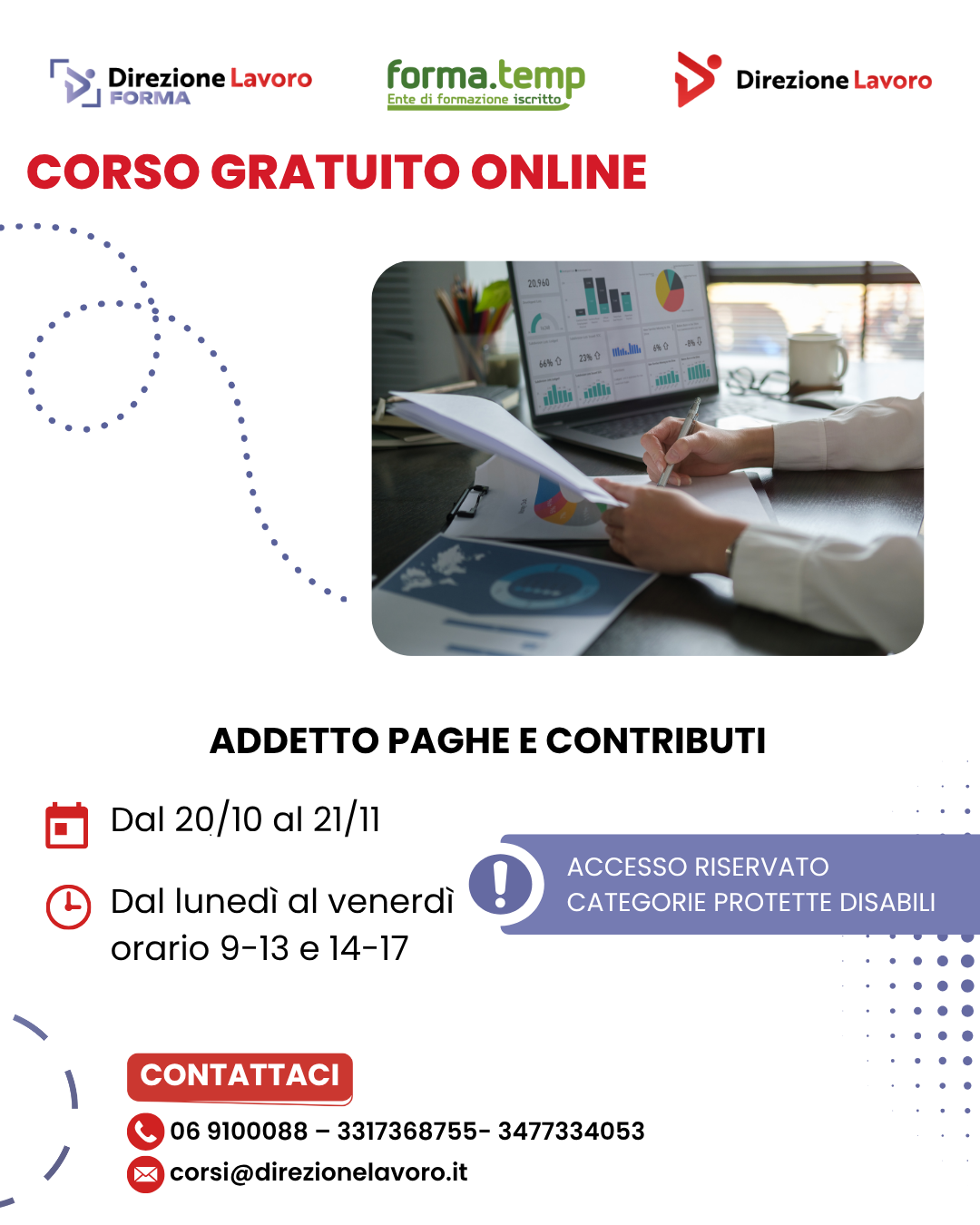 Corsi di Formazione Gratuita Online riservati a persone con disabilità - Addetto/a paghe e contributi